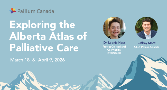 Don’t miss this opportunity to join Jeffrey Moat, CEO of Pallium Canada, and Dr. Leonie Herx, MD, PhD, CCFP(PC), FCFP, Project Co-lead and Co-Principal Investigator of the Atlas, and learn more about this unique, interactive tool, and how it can be used to support evidence-based decision-making, improve care planning, and enhance equitable access to palliative care.