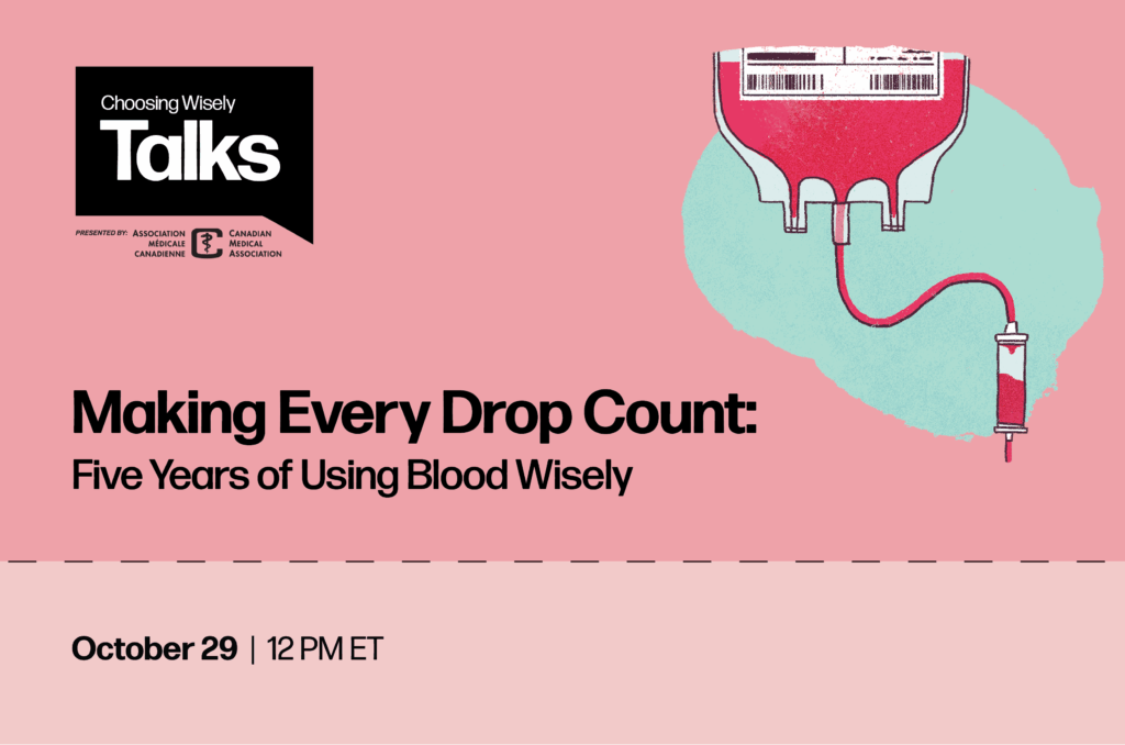 Up to 30% of blood is transfused inappropriately in Canadian hospitals despite best evidence. In 2020, Using Blood Wisely was launched to address this challenge, setting national appropriateness benchmarks and supporting hospitals to improve transfusion practices.